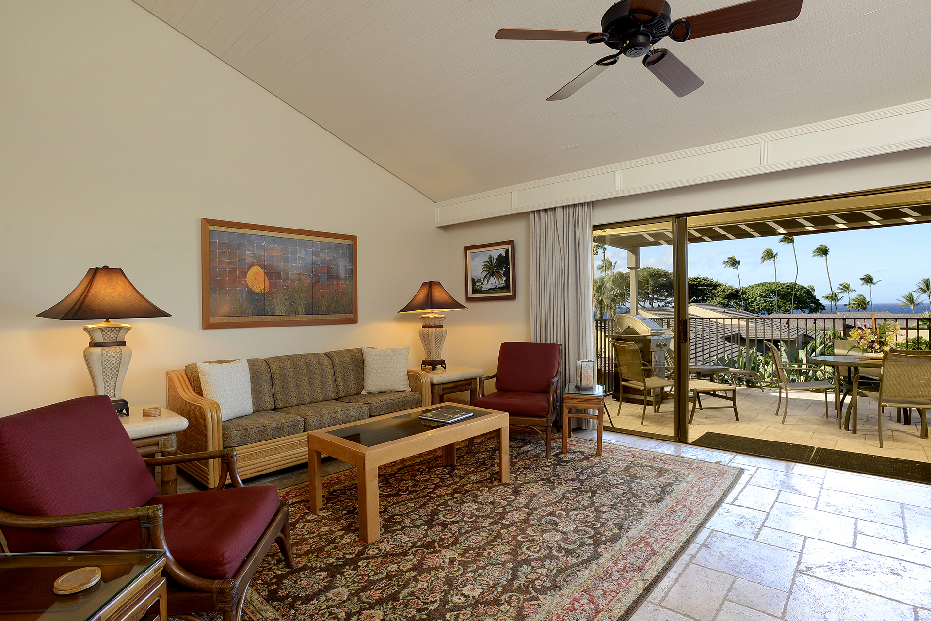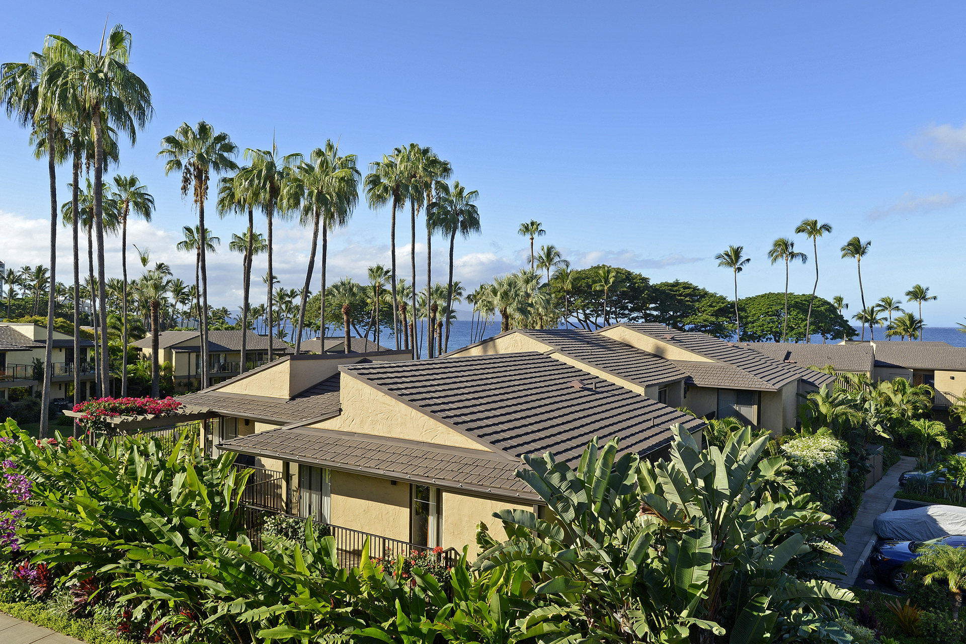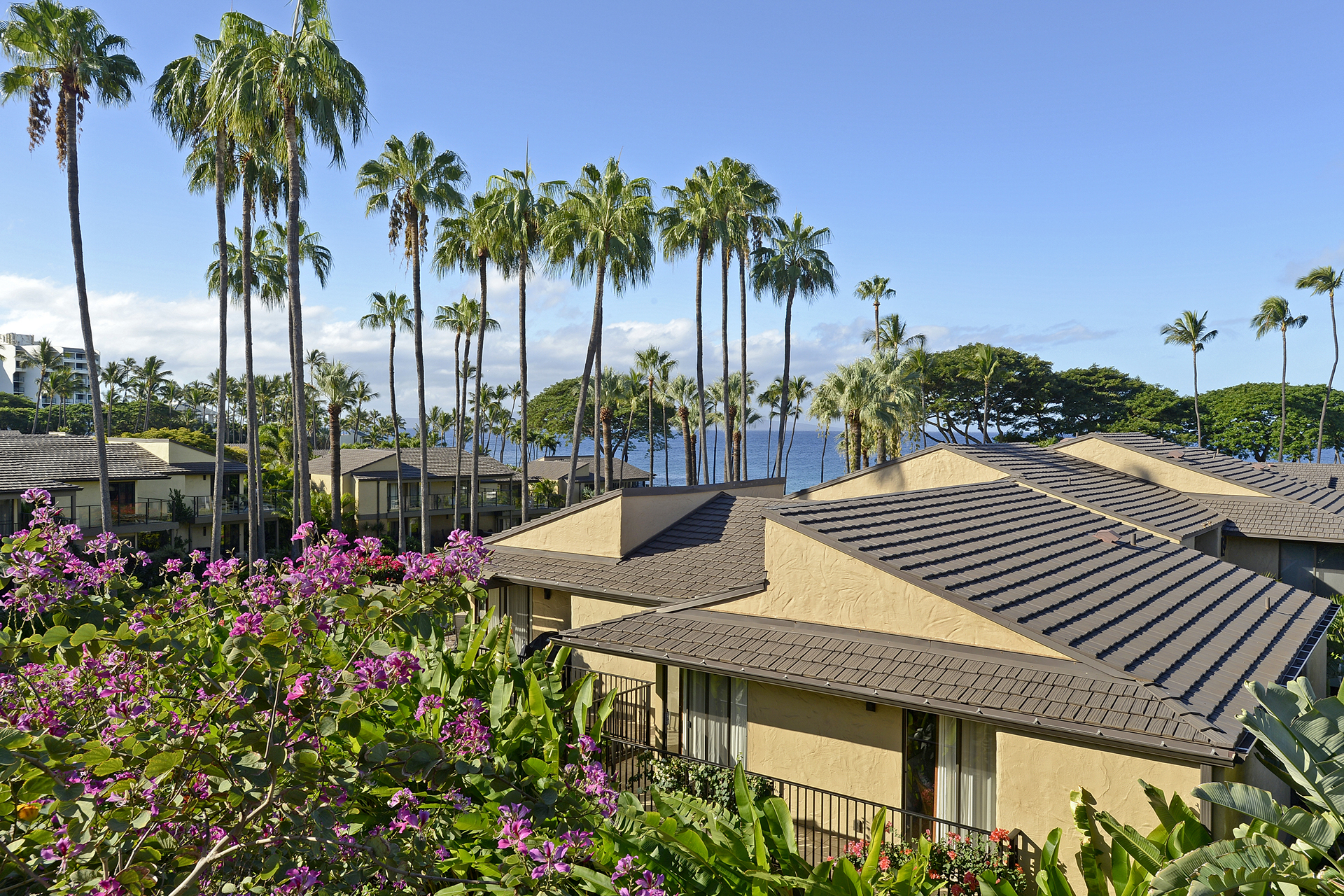 Ideal for families, couples and friendly get-togethers, the beautifully appointed one-, two- and three-bedroom condominiums offer spectacular ocean or garden views and luxury amenities including weekly housekeeping and concierge service. Each condo has a private lanai, is tastefully furnished and has a fully equipped kitchen with dishwasher and microwave as well as a washer/dryer, cable TV and A/C.