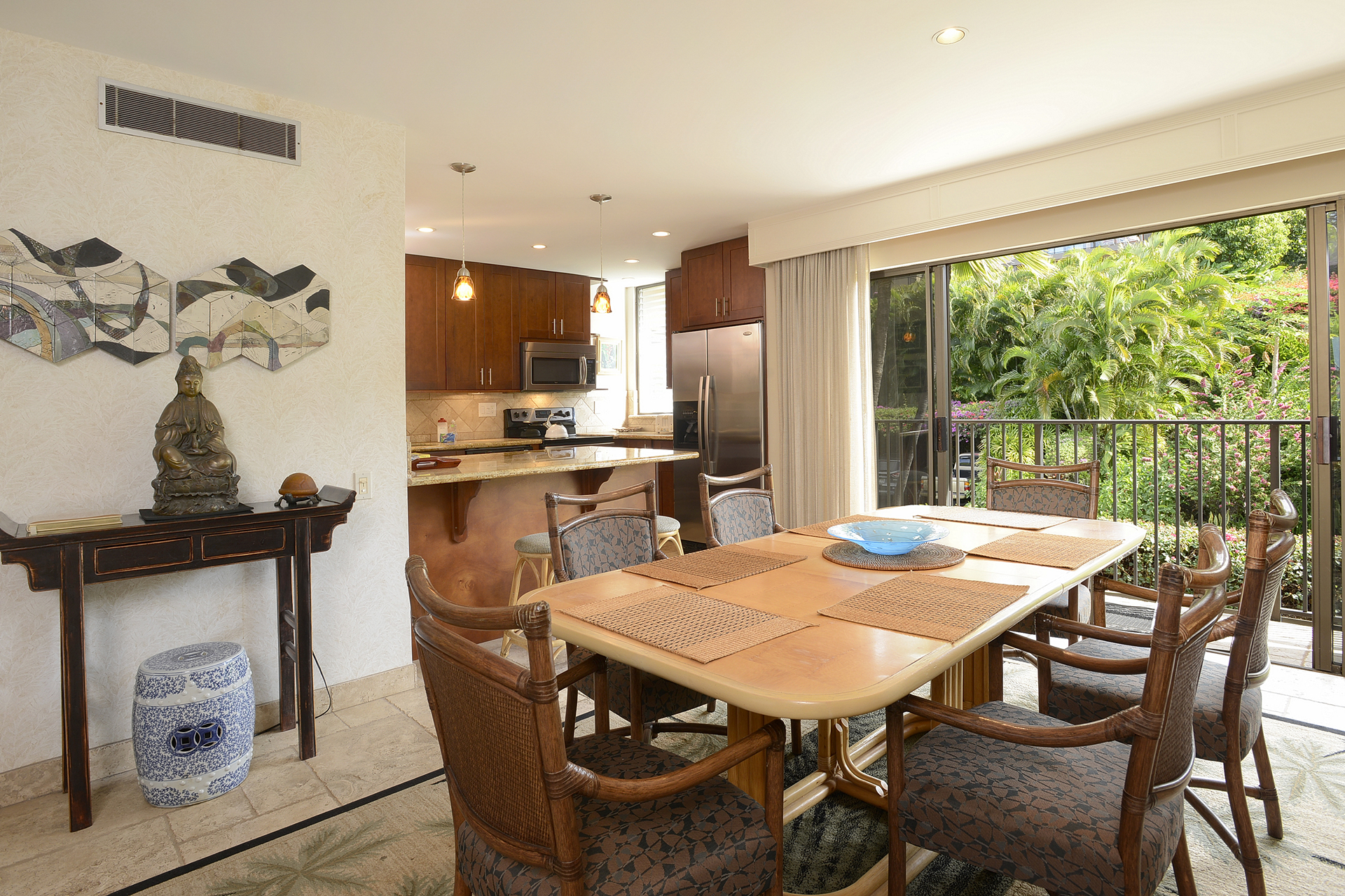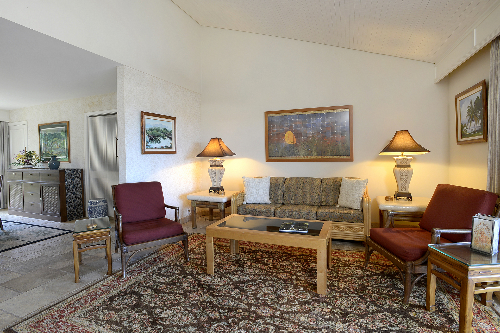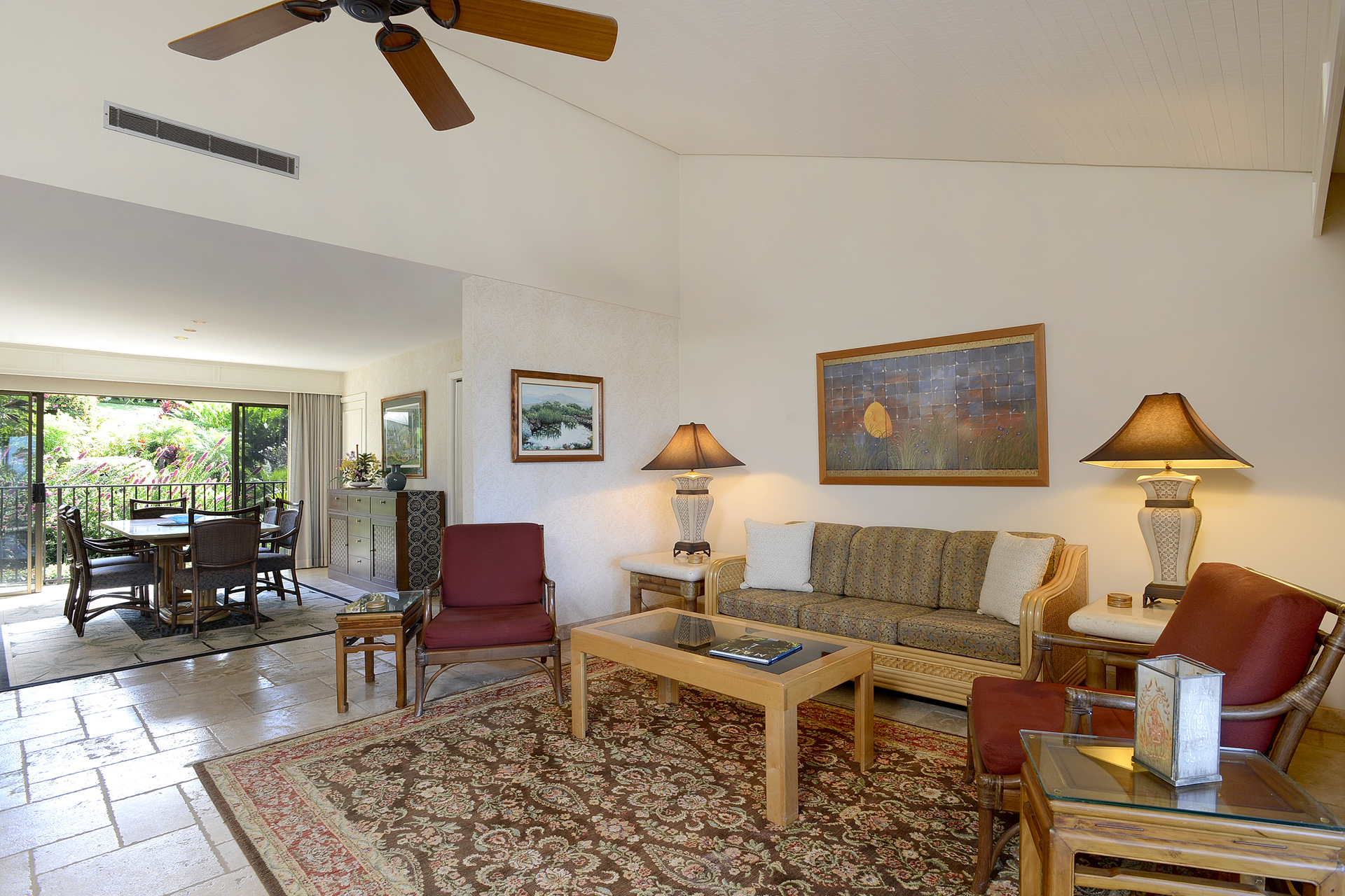 Ideal for families, couples and friendly get-togethers, the beautifully appointed one-, two- and three-bedroom condominiums offer spectacular ocean or garden views and luxury amenities including weekly housekeeping and concierge service. Each condo has a private lanai, is tastefully furnished and has a fully equipped kitchen with dishwasher and microwave as well as a washer/dryer, cable TV and A/C.